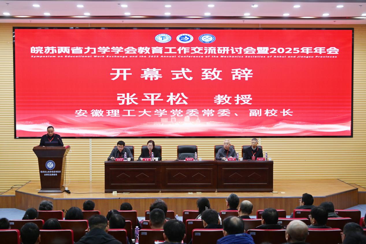2025年11月28日至30日,由江苏省力学学会与安徽省力学学会共同主办,学会教育工作委员会和安徽理工大学共同承办的“皖苏两省力学学会教育工作交流研讨会暨2025年年会”在安徽理工大学成功举办。安徽理工大学党委常委、副校长张平松教授,学会监事、合肥工业大学刘一华教授,江苏省力学学会副理事长邬萱出席开幕式并致辞。江苏省力学学会教育工作委员会主任委员、南京航空航天大学陈建平教授,合肥工业大学李孝宝研究员(代理教育工作委员会主任委员),学会教育工作委员会副主任委员、中国科学技术大学黄颖青副教授以及安徽理工大学卢小雨教授等嘉宾出席会议。开幕式由安徽理工大学教务处处长刘令云教授主持。